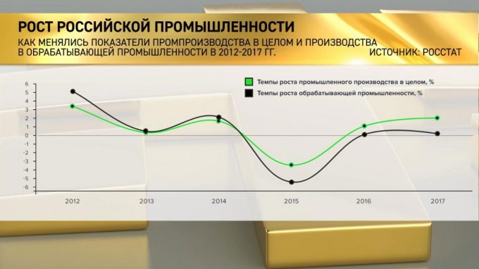 Что происходило с пенсиями? Следующие наши показатели. Динамика без учета единовременной выплаты 2017 года. Та манипуляция, о которую, кстати, сломался Росстат. Вы видите, что было в 2017 году? Этот всплеск, красиво выглядящий на графике, всего пять процентов индексации. Дальше, рост промышленности. Еще один график, как менялись показатели промпроизводства в целом и производства в обрабатывающей промышленности. Посмотрите, где находится обрабатывающая промышленность.
