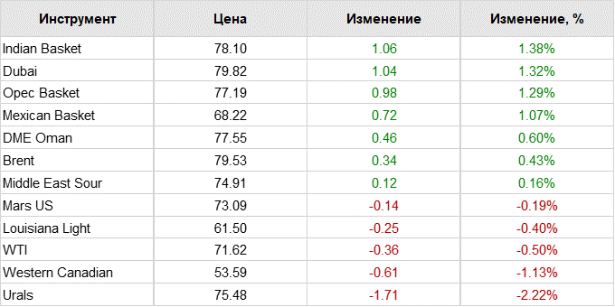По состоянию на 8.44 мск стоимость июльских фьючерсов на североморскую нефтяную смесь марки Brent опускалась на 0,48%, до 79,42 доллара за баррель, цена июльских фьючерсов на нефть марки WTI — на 0,4%, до 71,55 доллара за баррель.