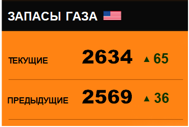 По сообщению статистической службы EIA от 01.08.2019 запасы газа в США на 25.07.2019 составили 2634 млрд. куб. футов. За неделю запасы природного газа в хранилищах выросли на 65 млрд. куб. футов. По итогам недели рост запасов газа составил 2.53 процента.
