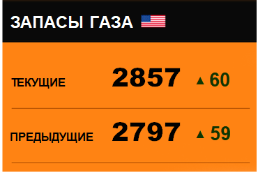 По сообщению статистической службы EIA от 29.08.2019 запасы газа в США на 22.08.2019 составили 2857 млрд. куб. футов. За неделю запасы природного газа в хранилищах выросли на 60 млрд. куб. футов. По итогам недели рост запасов газа составил 2.15 процента.