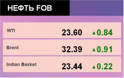 По состоянию на 4:21 мск цена июньских фьючерсов на нефть марки Brent растет на 4,40%, до $33,22 за баррель, стоимость майских фьючерсов на нефть марки WTI растет на 7,07%, до $24,37 за баррель.