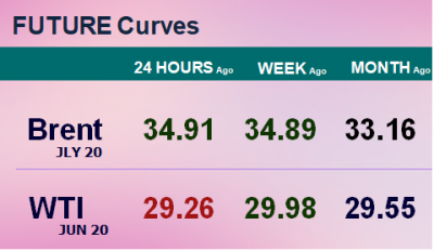 Согласно данным на 7.57 мск, фьючерсы на нефть марки Brent с поставкой в июне выросли на 1,32%, до 32,16 доллара за баррель. В свою очередь майские фьючерсы на нефть марки WTI выросли в цене на 1,34%, до 22,71 доллара за баррель.