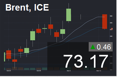 Цена в долларах за баррель. Для пересчета в доллары за тонну нефти марки Brent, необходимо цену умножить на 7,59.