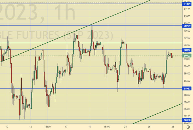 Продажа: нет. Кто в позиции от 91.30, добавка на 90.00, держите стоп на 91.55. Цель: 85.00.