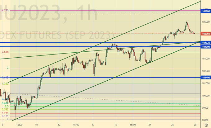 Покупка: нет. Кто в позиции от 104100, перенесите стоп на 104200. Цель: 106800 (112000).