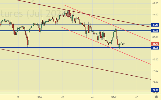 Продажа: нет. Кто в позиции от 84.02, перенесите стоп на 82.60. Цель: 77.50.