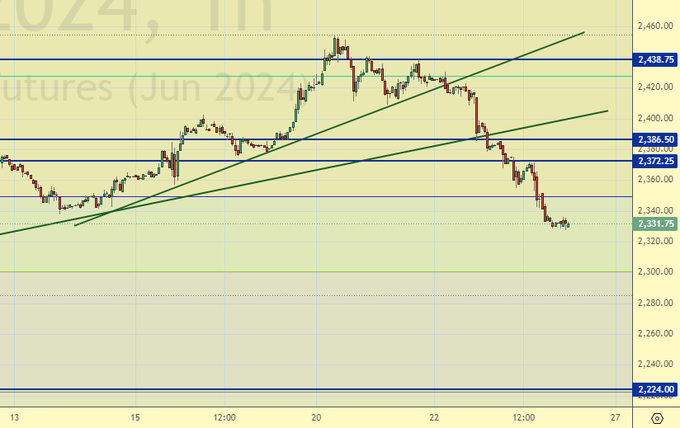 Продажа: нет. Кто в позиции от 2422, перенесите стоп на 2390. Цель: 2020.