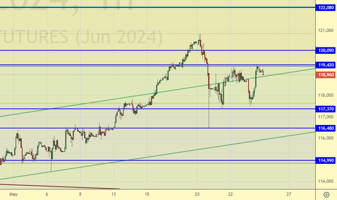 Продажа: сейчас (118960). Стоп: 120000. Цель: 100000.