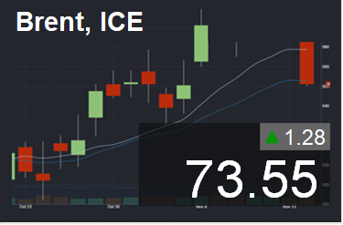 Цена в долларах за баррель. Для пересчета в доллары за тонну нефти марки Brent, необходимо цену умножить на 7,59.