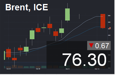 Цена в долларах за баррель. Для пересчета в доллары за тонну нефти марки Brent, необходимо цену умножить на 7,59.