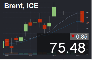 Цена в долларах за баррель. Для пересчета в доллары за тонну нефти марки Brent, необходимо цену умножить на 7,59.
