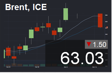 Цена в долларах за баррель. Для пересчета в доллары за тонну нефти марки Brent, необходимо цену умножить на 7,59.