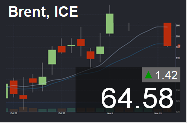 Цена в долларах за баррель. Для пересчета в доллары за тонну нефти марки Brent, необходимо цену умножить на 7,59.