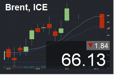 Цена в долларах за баррель. Для пересчета в доллары за тонну нефти марки Brent, необходимо цену умножить на 7,59.