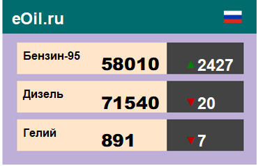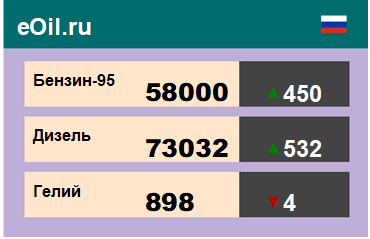 За прошедшую неделю в результате торгов на площадке eOil.ru были показаны следующие результаты электронных аукционов: цены на бензин неэтилированный АИ-95-К5, базис поставки Ханты-Мансийский АО, выросли за неделю на 2427 рублей до 58010 рублей за тонну. Цены на бензин неэтилированный АИ-92-К5, базис поставки Ханты-Мансийский АО, выросли за неделю на 1534 рубля до 53560 рублей за тонну. Цены на топливо дизельное ДТ-А-К5, базис поставки Ханты-Мансийский АО, снизились за неделю на 20 рублей до 71540 рублей за тонну. Цены на гелий газообразный, базис поставки Оренбургская область, снизились за неделю на 7 рублей до 891 рубля за кубический метр. |