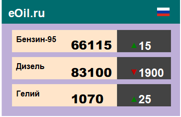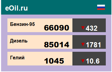 За прошедшую неделю в результате торгов на площадке eOil.ru были показаны следующие результаты электронных аукционов: цены на бензин неэтилированный АИ-95-К5, базис поставки Ханты-Мансийский АО, снизились за неделю на 994 рубля до 66522 рублей за тонну. Цены на бензин неэтилированный АИ-92-К5, базис поставки Ханты-Мансийский АО, выросли за неделю на 28 рублей до 63583 рублей за тонну. Цены на топливо дизельное ДТ-А-К5, базис поставки Ханты-Мансийский АО, снизились за неделю на 449 рублей до 86795 рублей за тонну. Цены на пропан-бутан автомобильный, базис поставки Тюменская область, снизились за неделю на 697 рублей до 23003 рублей за тонну. Цены на гелий газообразный, базис поставки Оренбургская область, снизились за неделю на 10 рублей до 1056 рублей за кубический метр. |