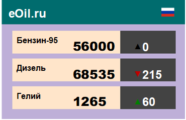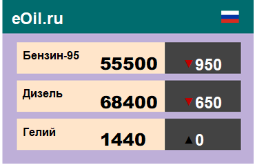За прошедшую неделю в результате торгов на площадке eOil.ru были показаны следующие результаты электронных аукционов: цены на бензин неэтилированный АИ-95-К5, базис поставки Ханты-Мансийский АО, выросли за неделю на 960 рублей до 56510 рублей за тонну. Цены на бензин неэтилированный АИ-92-К5, базис поставки Ханты-Мансийский АО, снизились за неделю на 665 рублей до 47350 рублей за тонну. Цены на топливо дизельное ДТ-А-К5, базис поставки Ханты-Мансийский АО, снизились за неделю на 890 рублей до 67566 рублей за тонну. Цены на пропан-бутан автомобильный, базис поставки Тюменская область, выросли за неделю на 2050 рублей до 9450 рублей за тонну. Цены на гелий газообразный, базис поставки Оренбургская область, снизились за неделю на 38 рублей до 1230 рублей за кубический метр. |