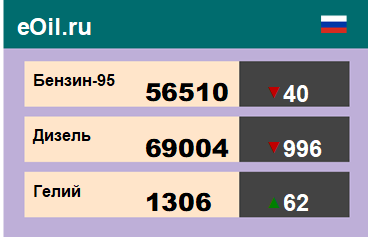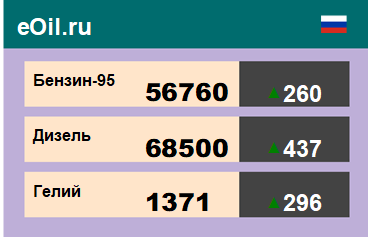 За прошедшую неделю в результате торгов на площадке eOil.ru были показаны следующие результаты электронных аукционов: цены на бензин неэтилированный АИ-95-К5, базис поставки Ханты-Мансийский АО, выросли за неделю на 260 рублей до 56760 рублей за тонну. Цены на бензин неэтилированный АИ-92-К5, базис поставки Ханты-Мансийский АО, выросли за неделю на 770 рублей до 49832 рублей за тонну. Цены на топливо дизельное ДТ-А-К5, базис поставки Ханты-Мансийский АО, выросли за неделю на 437 рублей до 68500 рублей за тонну. Цены на пропан-бутан автомобильный, базис поставки Тюменская область, снизились за неделю на 607 рублей до 8202 рублей за тонну. Цены на гелий газообразный, базис поставки Оренбургская область, выросли за неделю на 296 рублей до 1371 рубля за кубический метр. |