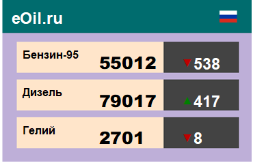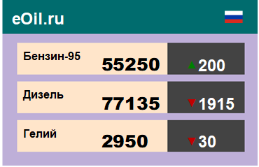 За прошедшую неделю в результате торгов на площадке eOil.ru были показаны следующие результаты электронных аукционов: цены на бензин неэтилированный АИ-95-К5, базис поставки Ханты-Мансийский АО, выросли за неделю на 10 рублей до 54750 рублей за тонну. Цены на бензин неэтилированный АИ-92-К5, базис поставки Ханты-Мансийский АО, снизились за неделю на 1051 рубль до 50557 рублей за тонну. Цены на топливо дизельное ДТ-А-К5, базис поставки Ханты-Мансийский АО, выросли за неделю на 3140 рублей до 79181 рубля за тонну. Цены на пропан-бутан автомобильный, базис поставки Тюменская область, снизились за неделю на 1100 рублей до 16050 рублей за тонну. Цены на гелий газообразный, базис поставки Оренбургская область, снизились за неделю на 154 рубля до 2697 рублей за кубический метр. |
