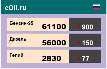 За прошедшую неделю в результате торгов на площадке eOil.ru были показаны следующие результаты электронных аукционов: цены на бензин неэтилированный АИ-95-К5, базис поставки Ханты-Мансийский АО, снизились за неделю на 78 рублей до 62500 рублей за тонну. Цены на бензин неэтилированный АИ-92-К5, базис поставки Ханты-Мансийский АО, снизились за неделю на 1246 рублей до 54058 рублей за тонну. Цены на топливо дизельное ДТ-А-К5, базис поставки Ханты-Мансийский АО, снизились за неделю на 38 рублей до 56519 рублей за тонну. Цены на пропан-бутан автомобильный, базис поставки Тюменская область, снизились за неделю на 2012 рубля до 20488 рублей за тонну. Цены на гелий газообразный, базис поставки Оренбургская область, снизились за неделю на 98 рублей до 3203 рублей за кубический метр. |