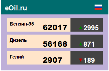 За прошедшую неделю в результате торгов на площадке eOil.ru были показаны следующие результаты электронных аукционов: цены на бензин неэтилированный АИ-95-К5, базис поставки Ханты-Мансийский АО, выросли за неделю на 2995 рублей до 62017 рублей за тонну. Цены на бензин неэтилированный АИ-92-К5, базис поставки Ханты-Мансийский АО, выросли за неделю на 4143 рубля до 54020 рублей за тонну. Цены на топливо дизельное ДТ-А-К5, базис поставки Ханты-Мансийский АО, выросли за неделю на 871 рубль до 56168 рублей за тонну. Цены на пропан-бутан автомобильный, базис поставки Тюменская область, выросли за неделю на 2941 рубль до 20864 рублей за тонну. Цены на гелий газообразный, базис поставки Оренбургская область, снизились за неделю на 189 рублей до 2907 рублей за кубический метр. |