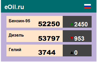 За прошедшую неделю в результате торгов на площадке eOil.ru были показаны следующие результаты электронных аукционов: цены на бензин неэтилированный АИ-95-К5, базис поставки Ханты-Мансийский АО, выросли за неделю на 5245 рублей до 55045 рублей за тонну. Цены на бензин неэтилированный АИ-92-К5, базис поставки Ханты-Мансийский АО, выросли за неделю на 2968 рублей до 48020 рублей за тонну. Цены на топливо дизельное ДТ-А-К5, базис поставки Ханты-Мансийский АО, снизились за неделю на 225 рублей до 54528 рублей за тонну. Цены на пропан-бутан автомобильный, базис поставки Тюменская область, выросли за неделю на 2350 рублей до 11000 рублей за тонну. Цены на гелий газообразный, базис поставки Оренбургская область, снизились за неделю на 444 рубля до 3300 рублей за кубический метр. Цены на конденсат газовый стабильный, базис поставки Краснодарский край, не изменились за неделю, и составляют 24000 рублей за тонну. |