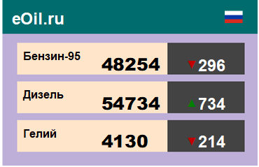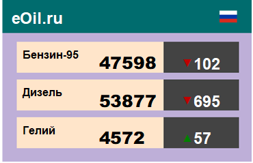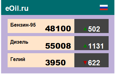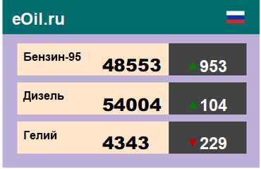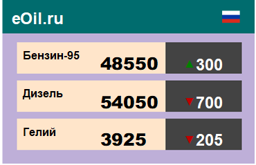 За прошедшую неделю в результате торгов на площадке eOil.ru были показаны следующие результаты электронных аукционов: цены на бензин неэтилированный АИ-95-К5, базис поставки Ханты-Мансийский АО, выросли за неделю на 502 рубля до 48100 рублей за тонну. Цены на бензин неэтилированный АИ-92-К5, базис поставки Ханты-Мансийский АО, снизились за неделю на 557 рублей до 44823 рублей за тонну. Цены на топливо дизельное ДТ-А-К5, базис поставки Ханты-Мансийский АО, выросли за неделю на 1131 рубль до 55008 рублей за тонну. Цены на пропан-бутан автомобильный, базис поставки Тюменская область, выросли за неделю на 200 рублей до 6200 рублей за тонну. Цены на гелий газообразный, базис поставки Оренбургская область, снизились за неделю на 622 рубля до 3950 рублей за кубический метр. |