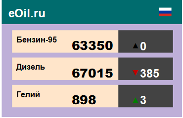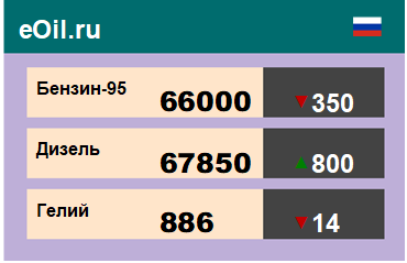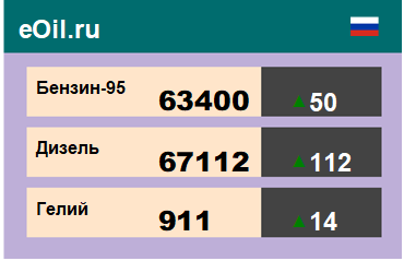 За прошедшую неделю в результате торгов на площадке eOil.ru были показаны следующие результаты электронных аукционов: цены на бензин неэтилированный АИ-95-К5, базис поставки Ханты-Мансийский АО, выросли за неделю на 5720 рублей до 63220 рублей за тонну. Цены на бензин неэтилированный АИ-92-К5, базис поставки Ханты-Мансийский АО, выросли за неделю на 5568 рублей до 58081 рубля за тонну. Цены на топливо дизельное ДТ-А-К5, базис поставки Ханты-Мансийский АО, выросли за неделю на 536 рублей до 67052 рублей за тонну. Цены на гелий газообразный, базис поставки Оренбургская область, снизились за неделю на 11 рубль до 899 рублей за кубический метр. |