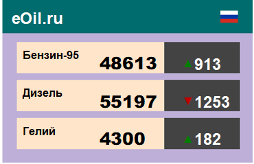 За прошедшую неделю в результате торгов на площадке eOil.ru были показаны следующие результаты электронных аукционов: цены на бензин неэтилированный АИ-95-К5, базис поставки Ханты-Мансийский АО, снизились за неделю на 2130 рублей до 47700 рублей за тонну. Цены на бензин неэтилированный АИ-92-К5, базис поставки Ханты-Мансийский АО, выросли за неделю на 48 рублей до 45850 рублей за тонну. Цены на топливо дизельное ДТ-А-К5, базис поставки Ханты-Мансийский АО, снизились за неделю на 1983 рубля до 54572 рублей за тонну. Цены на пропан-бутан автомобильный, базис поставки Тюменская область, выросли за неделю на 4759 рублей до 8659 рублей за тонну. Цены на гелий газообразный, базис поставки Оренбургская область, выросли за неделю на 492 рубля до 4515 рублей за кубический метр. Цены на конденсат газовый стабильный, базис поставки Краснодарский край, выросли за неделю на 5100 рублей до 24000 рублей за тонну. |