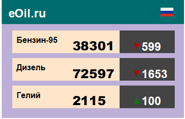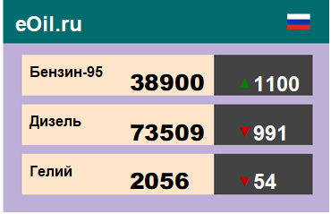 За прошедшую неделю в результате торгов на площадке eOil.ru были показаны следующие результаты электронных аукционов: цены на бензин неэтилированный АИ-95-К5, базис поставки Ханты-Мансийский АО, выросли за неделю на 515 рублей до 38301 рубля за тонну. Цены на бензин неэтилированный АИ-92-К5, базис поставки Ханты-Мансийский АО, снизились за неделю на 2523 рубля до 34746 рублей за тонну. Цены на топливо дизельное ДТ-А-К5, базис поставки Ханты-Мансийский АО, выросли за неделю на 538 рублей до 72597 рублей за тонну. Цены на пропан-бутан автомобильный, базис поставки Тюменская область, снизились за неделю на 36 рублей до 6414 рублей за тонну. Цены на гелий газообразный, базис поставки Оренбургская область, снизились за неделю на 84 рубля до 2115 рублей за кубический метр. Цены на конденсат газовый стабильный, базис поставки Краснодарский край, не изменились за неделю, и составляют 31500 рублей за тонну. |