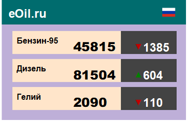 За прошедшую неделю в результате торгов на площадке eOil.ru были показаны следующие результаты электронных аукционов: цены на бензин неэтилированный АИ-95-К5, базис поставки Ханты-Мансийский АО, снизились за неделю на 3383 рубля до 43412 рублей за тонну. Цены на бензин неэтилированный АИ-92-К5, базис поставки Ханты-Мансийский АО, выросли за неделю на 112 рубля до 42112 рублей за тонну. Цены на топливо дизельное ДТ-А-К5, базис поставки Ханты-Мансийский АО, выросли за неделю на 84 рубля до 79584 рублей за тонну. Цены на пропан-бутан автомобильный, базис поставки Тюменская область, снизились за неделю на 1788 рублей до 9726 рублей за тонну. Цены на гелий газообразный, базис поставки Оренбургская область, снизились за неделю на 20 рублей до 2101 рубля за кубический метр. Цены на конденсат газовый стабильный, базис поставки Краснодарский край, не изменились за неделю, и составляют 28500 рублей за тонну.