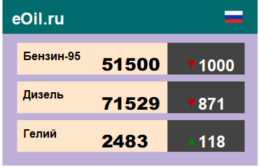 За прошедшую неделю в результате торгов на площадке eOil.ru были показаны следующие результаты электронных аукционов: цены на бензин неэтилированный АИ-95-К5, базис поставки Ханты-Мансийский АО, снизились за неделю на 2638 рублей до 53012 рублей за тонну. Цены на бензин неэтилированный АИ-92-К5, базис поставки Ханты-Мансийский АО, снизились за неделю на 2133 рубля до 44716 рублей за тонну. Цены на топливо дизельное ДТ-А-К5, базис поставки Ханты-Мансийский АО, выросли за неделю на 2455 рублей до 70308 рублей за тонну. Цены на пропан-бутан автомобильный, базис поставки Тюменская область, выросли за неделю на 1136 рублей до 13600 рублей за тонну. Цены на гелий газообразный, базис поставки Оренбургская область, не изменились за неделю, и составляют 2488 рублей за кубический метр. Цены на конденсат газовый стабильный, базис поставки Краснодарский край, не изменились за неделю, и составляют 27700 рублей за тонну.