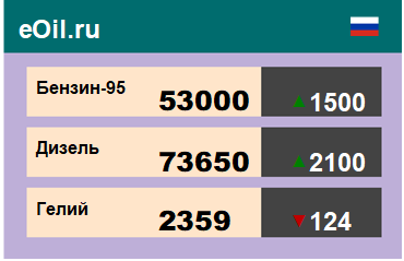 За прошедшую неделю в результате торгов на площадке eOil.ru были показаны следующие результаты электронных аукционов: цены на бензин неэтилированный АИ-95-К5, базис поставки Ханты-Мансийский АО, выросли за неделю на 338 рублей до 53350 рублей за тонну. Цены на бензин неэтилированный АИ-92-К5, базис поставки Ханты-Мансийский АО, снизились за неделю на 602 рубля до 44114 рублей за тонну. Цены на топливо дизельное ДТ-А-К5, базис поставки Ханты-Мансийский АО, выросли за неделю на 2628 рублей до 72936 рублей за тонну. Цены на пропан-бутан автомобильный, базис поставки Тюменская область, выросли за неделю на 7083 рубля до 20683 рублей за тонну. Цены на гелий газообразный, базис поставки Оренбургская область, снизились за неделю на 357 рублей до 2131 рубля за кубический метр. Цены на конденсат газовый стабильный, базис поставки Краснодарский край, не изменились за неделю, и составляют 27700 рублей за тонну.