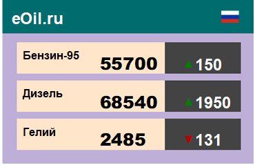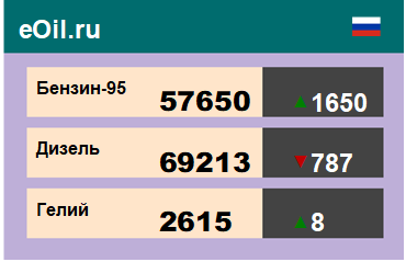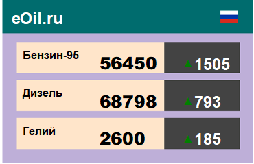 За прошедшую неделю в результате торгов на площадке eOil.ru были показаны следующие результаты электронных аукционов: цены на бензин неэтилированный АИ-95-К5, базис поставки Ханты-Мансийский АО, выросли за неделю на 1505 рублей до 56450 рублей за тонну. Цены на бензин неэтилированный АИ-92-К5, базис поставки Ханты-Мансийский АО, выросли за неделю на 28 рублей до 47528 рублей за тонну. Цены на топливо дизельное ДТ-А-К5, базис поставки Ханты-Мансийский АО, выросли за неделю на 793 рубля до 68798 рублей за тонну. Цены на пропан-бутан автомобильный, базис поставки Тюменская область, выросли за неделю на 3067 рублей до 12600 рублей за тонну. Цены на гелий газообразный, базис поставки Оренбургская область, выросли за неделю на 185 рублей до 2600 рублей за кубический метр. Цены на конденсат газовый стабильный, базис поставки Краснодарский край, снизились за неделю на 428 рублей до 27700 рублей за тонну.