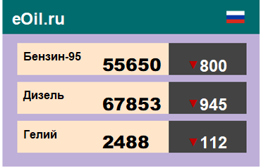 За прошедшую неделю в результате торгов на площадке eOil.ru были показаны следующие результаты электронных аукционов: цены на бензин неэтилированный АИ-95-К5, базис поставки Ханты-Мансийский АО, снизились за неделю на 800 рублей до 55650 рублей за тонну. Цены на бензин неэтилированный АИ-92-К5, базис поставки Ханты-Мансийский АО, снизились за неделю на 679 рублей до 46849 рублей за тонну. Цены на топливо дизельное ДТ-А-К5, базис поставки Ханты-Мансийский АО, снизились за неделю на 945 рублей до 67853 рублей за тонну. Цены на пропан-бутан автомобильный, базис поставки Тюменская область, снизились за неделю на 136 рублей до 12464 рублей за тонну. Цены на гелий газообразный, базис поставки Оренбургская область, снизились за неделю на 112 рубля до 2488 рублей за кубический метр. Цены на конденсат газовый стабильный, базис поставки Краснодарский край, не изменились за неделю, и составляют 27700 рублей за тонну.