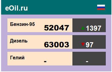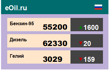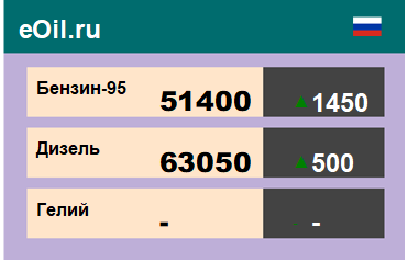 За прошедшую неделю в результате торгов на площадке eOil.ru были показаны следующие результаты электронных аукционов: цены на бензин неэтилированный АИ-95-К5, базис поставки Ханты-Мансийский АО, выросли за неделю на 5090 рублей до 53600 рублей за тонну. Цены на бензин неэтилированный АИ-92-К5, базис поставки Ханты-Мансийский АО, выросли за неделю на 205 рублей до 41304 рублей за тонну. Цены на топливо дизельное ДТ-А-К5, базис поставки Ханты-Мансийский АО, снизились за неделю на 27 рублей до 62356 рублей за тонну. Цены на пропан-бутан автомобильный, базис поставки Тюменская область, выросли за неделю на 848 рублей до 6128 рублей за тонну. Цены на гелий газообразный, базис поставки Оренбургская область, снизились за неделю на 1372 рубля до 3188 рублей за кубический метр. Цены на конденсат газовый стабильный, базис поставки Краснодарский край, снизились за неделю на 12380 рублей до 28128 рублей за тонну.