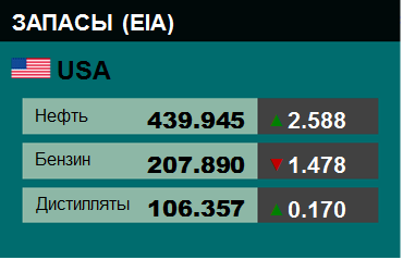 Цены на нефть снижаются после выхода данных о недельном изменении запасов энергоресурса в США. Стоимость ноябрьских фьючерсов на нефть Brent на лондонской бирже ICE Futures к 17:55 мск в среду составляет $90,28 за баррель, что на $0,34 (0,38%) ниже цены на закрытие предыдущей сессии. Цена фьючерсов на нефть WTI на ноябрь на торгах Нью-Йоркской товарной биржи (NYMEX) составляет к этому времени $83,43 за баррель, что на $0,51 (0,61%) меньше итогового значения предыдущей сессии. |