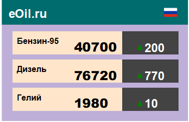 За прошедшую неделю в результате торгов на площадке eOil.ru были показаны следующие результаты электронных аукционов: цены на бензин неэтилированный АИ-95-К5, базис поставки Ханты-Мансийский АО, снизились за неделю на 4007 рублей до 41543 рублей за тонну. Цены на бензин неэтилированный АИ-92-К5, базис поставки Ханты-Мансийский АО, снизились за неделю на 1693 рубля до 36575 рублей за тонну. Цены на топливо дизельное ДТ-А-К5, базис поставки Ханты-Мансийский АО, снизились за неделю на 10793 рубля до 73763 рублей за тонну. Цены на пропан-бутан автомобильный, базис поставки Тюменская область, снизились за неделю на 826 рублей до 3500 рублей за тонну. Цены на гелий газообразный, базис поставки Оренбургская область, выросли за неделю на 3 рубля до 1958 рублей за кубический метр. Цены на конденсат газовый стабильный, базис поставки Краснодарский край, не изменились за неделю, и составляют 33050 рублей за тонну. |