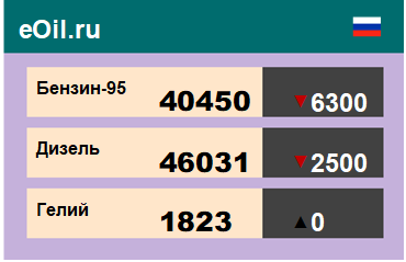 За прошедшую неделю в результате торгов на площадке eOil.ru были показаны следующие ценовые изменения: Цены на бензин неэтилированный АИ-95-К5, базис поставки Ханты-Мансийский а.о., упали за неделю на 6300 рублей до 40450 рублей за тонну. Цены на бензин неэтилированный АИ-92-К5, базис поставки Ханты-Мансийский а.о., упали за неделю на 3485 рублей до 41815 рублей за тонну. Цены на топливо дизельное ДТ-А-К5, базис поставки Ханты-Мансийский а.о., упали за неделю на 2500 рублей до 46031 рубля за тонну. Цены на пропан-бутан автомобильный, базис поставки Тюменская область, упали за неделю на 1552 рубля до 8300 рублей за тонну. Цены на гелий газообразный, базис поставки Оренбургская область, не изменились за неделю, и составляют 1823 рубля за тонну.
