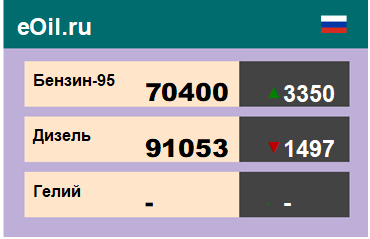 За прошедшую неделю в результате торгов на площадке eOil.ru были показаны следующие результаты электронных аукционов: цены на бензин неэтилированный АИ-95-К5, базис поставки Ханты-Мансийский АО, снизились за неделю на 7 рублей до 66021 рубля за тонну. Цены на бензин неэтилированный АИ-92-К5, базис поставки Ханты-Мансийский АО, снизились за неделю на 1239 рублей до 60517 рублей за тонну. Цены на топливо дизельное ДТ-А-К5, базис поставки Ханты-Мансийский АО, снизились за неделю на 3493 рубля до 90554 рублей за тонну. Цены на пропан-бутан автомобильный, базис поставки Тюменская область, снизились за неделю на 3959 рублей до 11750 рублей за тонну. Цены на гелий газообразный, базис поставки Оренбургская область, не изменились за неделю, и составляют 1009 рублей за кубический метр. |