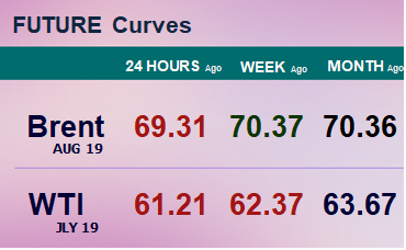Нефть, дорожавшая с утра, пошла на снижение после того как президент США Дональд Трамп пригрозил ввести новые санкции против Ирана, а также призвал другие страны самостоятельно защищать свои суда в Ормузском проливе. По итогам торгов 24 июня стоимость августовского контракта на нефть марки Brent на бирже ICE Futures в Лондоне снизилась на $0,34 (0,52%) и составила $64,86 за баррель. Августовский фьючерс на WTI на Нью-Йоркской товарной бирже NYMEX увеличился на $0,47 (0,82%) — до $57,90 за баррель. Сегодня цены на нефть падают. Августовские фьючерсы на нефть марки Brent к 8:08 мск на $0,54 (0,83%) — до $64,32 за баррель.