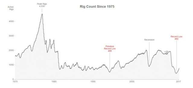 Сланцевый бум возрождается. Количество нефтяных и газовых буровых установок в США, по данным Baker Hughes, удвоилось, после того как в конце 2016 г. было достигнуто их сокращение до самого низкого уровня за более чем 75 лет.