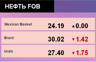 Котировки цены на нефть марки Brent, порадовавшие вчера аналитиков небольшим ростом до 30 долларов США за баррель, сегодня начали со снижения. По данным рынка FOREX цена за Brent (на 09:00 по московскому времени) составила 27,26 доллара за баррель. |