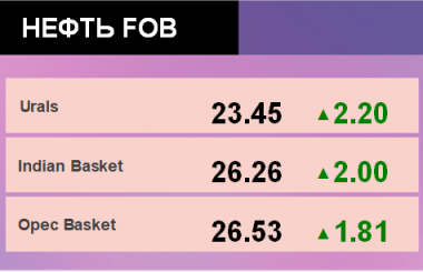 Цены на нефть растут в пятницу утром в начале торговой сессии на мировом рынке сырья. По данным торгов, к шести утра по московскому времени котировки “черного золота” марки Brent повышались на 0,84%, до 26,5 долларов за баррель. Бочка западнотехасской нефти WTI к этому времени дорожала на 1,68%, до 23 долларов. |