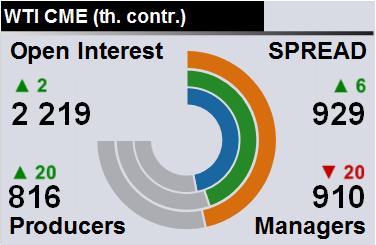 Отчет нефтесервисной компании Baker Hughes показал: с 13 по 19 октября количество активных буровых установок по добыче нефти в США увеличилось на 4 штуки, и составило 873 единицы (максимум с начала марта 2015 года). Напомним, годом ранее количество установок составляло 736 штук. Количество установок по добыче газа выросло на 1 штуку, составив 194 единицы. Общее число буровых установок (газовых, нефтяных и прочих) увеличилось на 4 штуки, и составило 1067 штук. За прошлую неделю, 10.10.18 — 16.10.18, разница между длинными и короткими позициями управляющих упала на 47 тыс. контрактов. В тоже время, цена упала на 3 доллара. Наращивание коротких позиций спекулянтами приводит к падению цен. Если давление со стороны медведей продолжится, то мы можем увидеть новые минимумы. |
