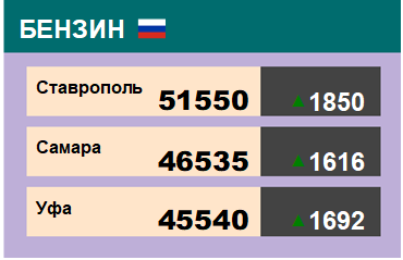 Стоимость топлива повысили «Лукойл-Центрнефтепродукт», «Газпромнефть-Центр», Shell и «Транс-АЗС». Цена бензина АИ-95 на заправках на заправках „Лукойла“ выросла на 10 копеек и составила 47,97 рублей за литр. Также сеть подняла на 10 копеек стоимость дизельного топлива до 46,27 рублей и бензина АИ-92 до 43,93 рублей. Цены на бензин АИ-92 и АИ-95 на заправках «Транс-АЗС» увеличились на 1 и 3 копейки и составили 42,55 и 46,19 рублей за литр соответственно. На АЗС «Газпром-нефть» цена выросла только на дизельное топливо на 1 копейку и достигла 45,1 рублей за литр.
