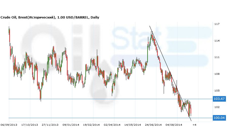 Вчера в ходе торгов нефть эталонных марок дешевела, при этом стоимость Brent опускалась ниже $100 за баррель впервые с июня 2013 года, а котировки WTI — до минимального уровня за 8 месяцев.