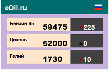 Сегодня, за прошедшую торговую сессию на площадке eOil.ru были показаны следующие результаты электронных аукционов: в 10:30 Мск., топливо дизельное ДТ-А-К5, базис поставки Ханты-Мансийский АО — 52000 руб./тн., c НДС 20%, (0 руб./тн.). В 11:00 Мск., бензин неэтилированный АИ-92-К5, базис поставки Ханты-Мансийский АО — 53000 руб./тн., c НДС 20%, (+250 руб./тн.). В 11:30 Мск., бензин неэтилированный АИ-95-К5, базис поставки Ханты-Мансийский АО — 59475 руб./тн., c НДС 20%, (-225 руб./тн.). В 11:30 Мск., пропан-бутан автомобильный, базис поставки Тюменская область — 26400 руб./тн., c НДС 20%, (-1300 руб./тн.). В 12:30 Мск.,гелий газообразный, базис поставки Оренбургская область — 1730 руб./тн., c НДС 20%, (-10 руб./тн.). |