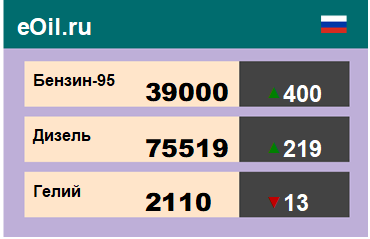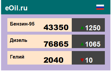 За прошедшую неделю в результате торгов на площадке eOil.ru были показаны следующие результаты электронных аукционов: цены на бензин неэтилированный АИ-95-К5, базис поставки Ханты-Мансийский АО, выросли за неделю на 3655 рублей до 43426 рублей за тонну. Цены на бензин неэтилированный АИ-92-К5, базис поставки Ханты-Мансийский АО, выросли за неделю на 1188 рублей до 36138 рублей за тонну. Цены на топливо дизельное ДТ-А-К5, базис поставки Ханты-Мансийский АО, выросли за неделю на 283 рубля до 75799 рублей за тонну. Цены на пропан-бутан автомобильный, базис поставки Тюменская область, выросли за неделю на 279 рублей до 6500 рублей за тонну. Цены на гелий газообразный, базис поставки Оренбургская область, снизились за неделю на 357 рублей до 1900 рублей за кубический метр. Цены на конденсат газовый стабильный, базис поставки Краснодарский край, выросли за неделю на 1550 рублей до 33050 рублей за тонну.