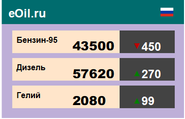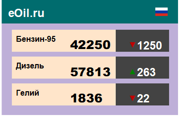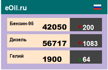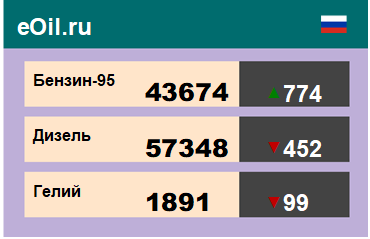 За прошедшую неделю в результате торгов на площадке eOil.ru были показаны следующие результаты электронных аукционов: цены на бензин неэтилированный АИ-95-К5, базис поставки Ханты-Мансийский АО, снизились за неделю на 3146 рублей до 43500 рублей за тонну. Цены на бензин неэтилированный АИ-92-К5, базис поставки Ханты-Мансийский АО, снизились за неделю на 1275 рублей до 37577 рублей за тонну. Цены на топливо дизельное ДТ-А-К5, базис поставки Ханты-Мансийский АО, выросли за неделю на 511 рубль до 57530 рублей за тонну. Цены на пропан-бутан автомобильный, базис поставки Тюменская область, снизились за неделю на 1853 рубля до 7547 рублей за тонну. Цены на гелий газообразный, базис поставки Оренбургская область, выросли за неделю на 113 рублей до 1858 рублей за кубический метр.